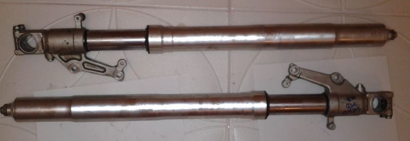 перья вилки Suzuki GSX-R 1000 K1 K2 2001-2002 перья целые ровные, с безаварийного мотоцикла, обслужены, поменяны сальники, залито новое масло, номер оригинала 51103-40F00-000, 51104-40F00-000, подходят только на K1 K2, цена за штуку |